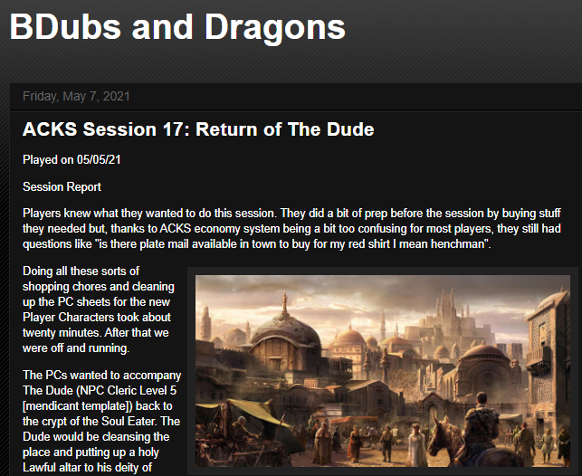 Got another big blog for you fans of old school tabletop RPGs. This time around we’re taking a look at a longish game of ACKS, Autarch’s excellent Adventurer, Conqueror, King.