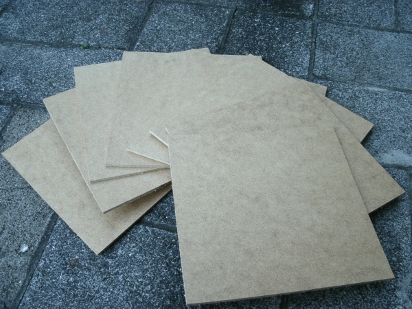 Ahhh, the sweet, sweet anticipation of a project not yet fully planned, not yet begun, and not yet totally screwed up. Gimme a little time on that third one. After a bit of fol-de-rol at the hardware store, I managed to get 8 tiles of 12″ by 12″ pressed board home.
