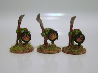 There’s nothing too spectacular about these orcs. They’ve got green skins just in case the Warmaster bug ever bites and a fire emblem that fits just about anywhere. This latest load brings the orc population of my figure case up to a whopping 18, including three spear-orcs, four bow-orcs (bowrcs?), and eleven swordsmen. That’s a big enough horde for any skirmish. Now I just need to figure out how to turn that leftover banner-orc into a shaman…