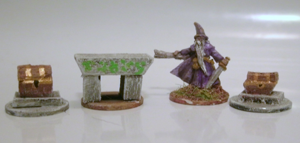 The thing about dungeon furniture is that every piece you put down reduces the playing space by one space. So what you’re really after is the suggestion of furnishings; at the table your imagination takes over and fills in all the gaps. At least that’s my story for why I don’t make a lot more furniture. Although these pieces were so much fun…I probably will make a lot more.