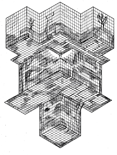 And just to demonstrate a little proof of concept, here’s a little number I banged out in about 30 minutes using the second template. It’s not going to win any awards, but this is a dungeon that isn’t constrained to any two dimensions. Just mapping this sucker is going to present a nice challenge for the players.
