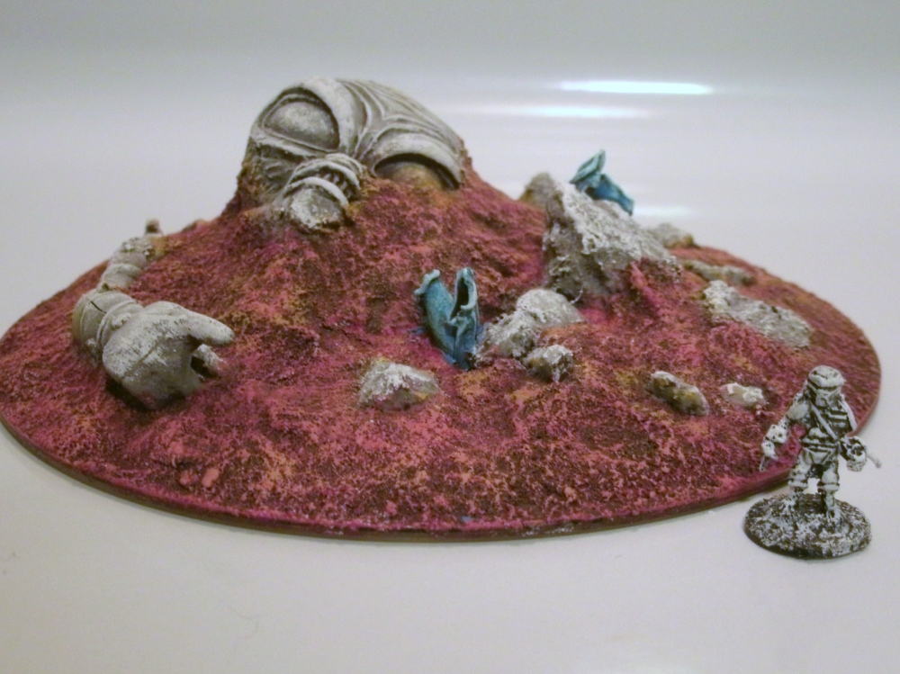 This alien doesn't look like any of the miniatures I have. I think it works as an ancient remnant of a long dead civilization – the current fight is (in part) a fight over the bones of that civilization.