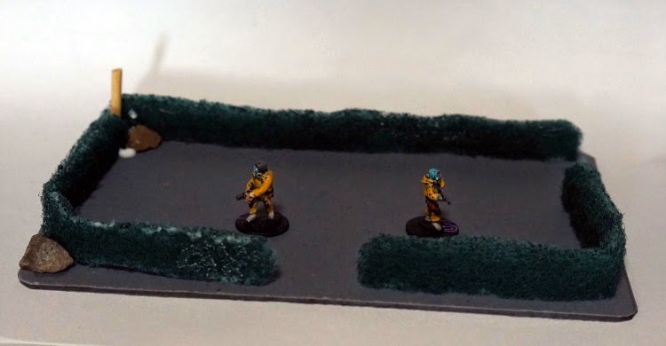| The figures are Rebel Miniatures. The fences are basic green scrubber hedges and cut balsa. |