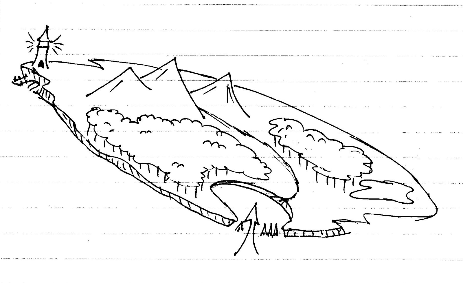 My submission to this year’s One Page Dungeon contest consists of an abridged version of the search for a pirate’s treasure. The actual treasure map, with a slightly more detailed background (why they called the dead pirate captain “The Brass Canon” for example), can be printed out and given to the players to spark their imagination and give them something to play around with while figuring out how to get onto the island.