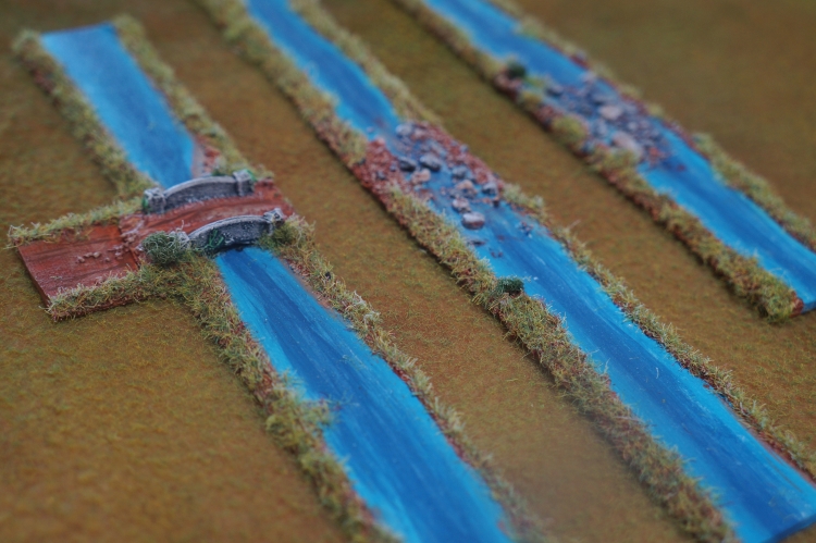 A single piece of 3-inch by 24-inch bass wood was enough to make five feet of rivers. Using the RAW, you’ll never need more than 36-inches of river, but with three lengths of unbroken river, on bridge, and two fords, you’ve got enough pieces to make any of the setups listed in the rulebook. There was even enough wood left over to add a curve and short make-up length.