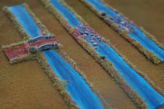 | May need to rethink that road piece left of the bridge. That bridge is a metal cast bought from Heroics and Ros. |