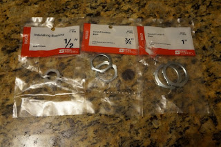 The smaller plastic nuts are used pretty much as-is. Each had some molded ID’s on top that needed to be trimmed off, then a small disc of cereal package cardboard was glued up underneath the inner lip of the threaded part.