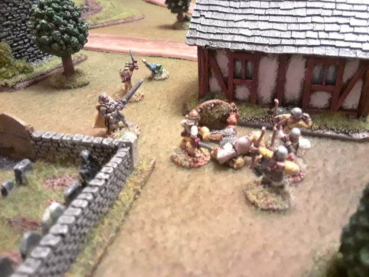 The local lord took his retainers out to investigate a diversion, but returned in time to find the ogre chief and his minions just sneaking into town.