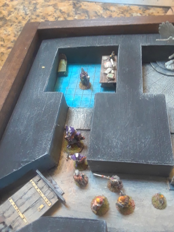 Along the way they found a room full of pools that attacked them, turned a staff magic, and showed them two of the rooms of the dungeon on a successful intelligence check. They also played around with a magic healing statue (shown on the left) and a magic mirror (shown on the right) that they played with for a while, didn’t trust, and basically left alone rather than risk fighting duplicates of themselves. Sometimes not playing is the smart way to play.