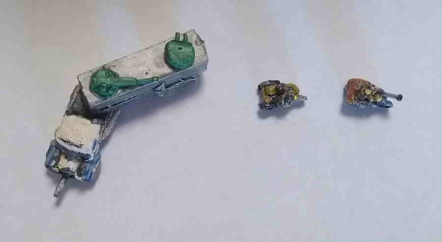 My cars are painted in considerably more day-glo colors than most of what you see on the YouTube reports. Everyone favors a black matte coat, a bit of gray and metal and rust drybrushing, and then they call it done. With vehicles this size, I don’t have the luxury of a monochrome schema. You need those colors to help identify the cars at a distance.
