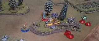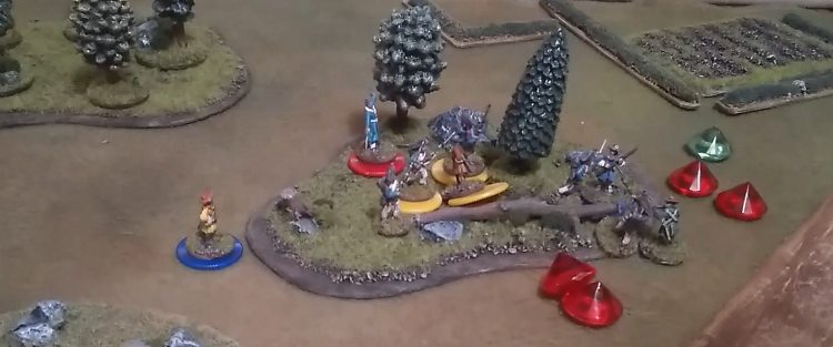 To bring you up to speed: in this game each melee figure gets to enact a set number of ploys. Better fighters get more options. The players each take a number of tokens that corresponds the figure’s rank. To complicate matters, the player has to choose how many will be attack and how many defense. The players do this in secret and reveal their attack-defense ratio after both have selected, enabling a mini-game of bluff and counter-bluff.