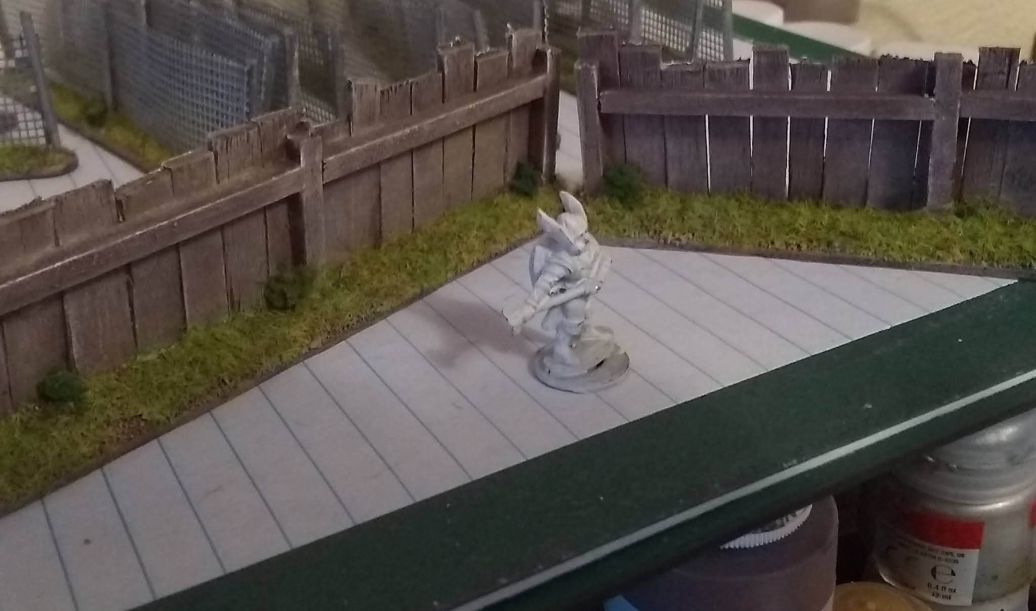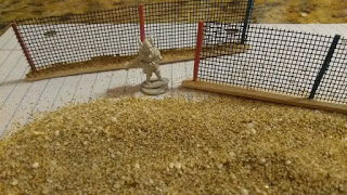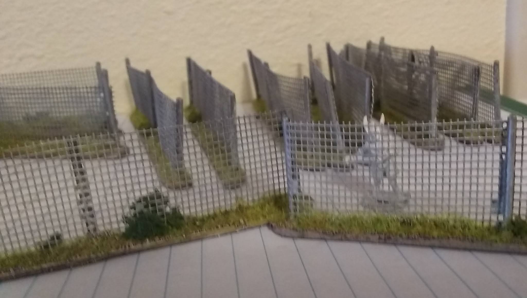 I’m not crazy about these fences. I should have oriented the screen diagonally to make a diamond pattern, and the cloth style screening is pretty flimsy. If you make these, go with the wire screen for better rigidity and robustness during storage. Also, I cut the popsicle sticks in half thinking to save space, and now they aren’t as stable as they could be.