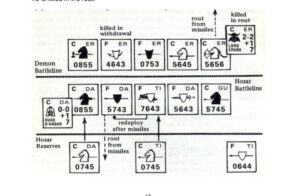First, let’s look at the counters. The good guys, Hosar, are in pale yellow, and the bad guys, the eponymous demon forces, in purple. In addition to the standard combat and morale and movement factors, the weapon type and armor type are indicated by the icons. Black icons are heavily armored, outlines factions are medium, and white icons are unarmored. Add to that an indication of foot, cavalry, or winged (in the upper left corner) and these counters are dense with information.